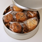 our silver gift tins include 1 pumpkin streusel cake, 36 assorted artisan cookies (assorted dozen plus a sampling of 6 of our most popular flavors), 3 platinos, 3 camees, and 6 brownies